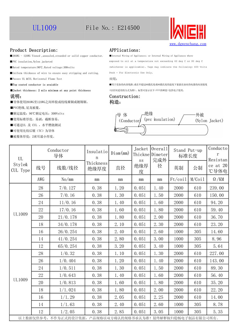 UL1009PVC绝缘尼龙被覆电子线